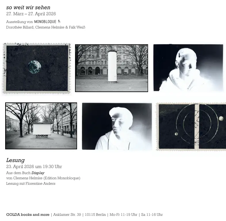 Inhaberin von GOLDA books and more ist Sarah Dornhof. Sie ist Berlinerin und lebt schon lange und gern in der Nachbarschaft. Sie ist promovierte Kulturwissenschaftlerin und hat bisher an verschiedenen Universitäten in Deutschland, Frankreich, Marokko, England und Ghana gearbeitet. Ihr Wissen und ihre Interessen möchte sie in die Buchhandlung einfließen lassen und vor allem Lust und Neugierde am Lesen und an anderen Welten weitergeben.